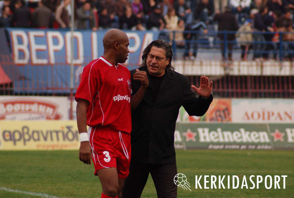 Ο Νίκος Κουκόλης ως γενικός αρχηγός της Βέροιας, με τον τότε ποδοσφαιριστή της ομάδας Φερέιρα Κινγκ, σε αγώνα της σεζόν 2006-2007.