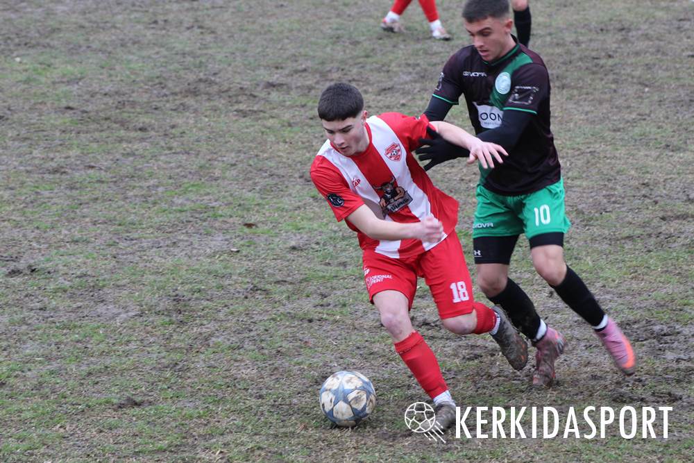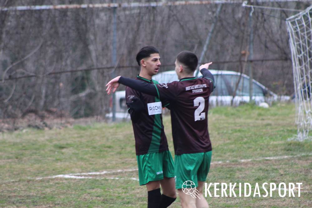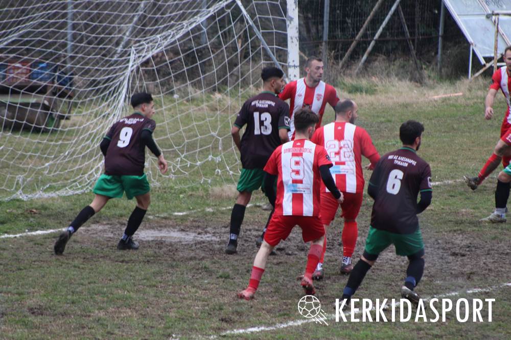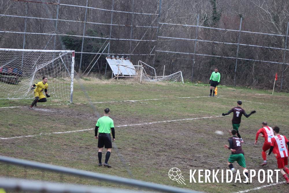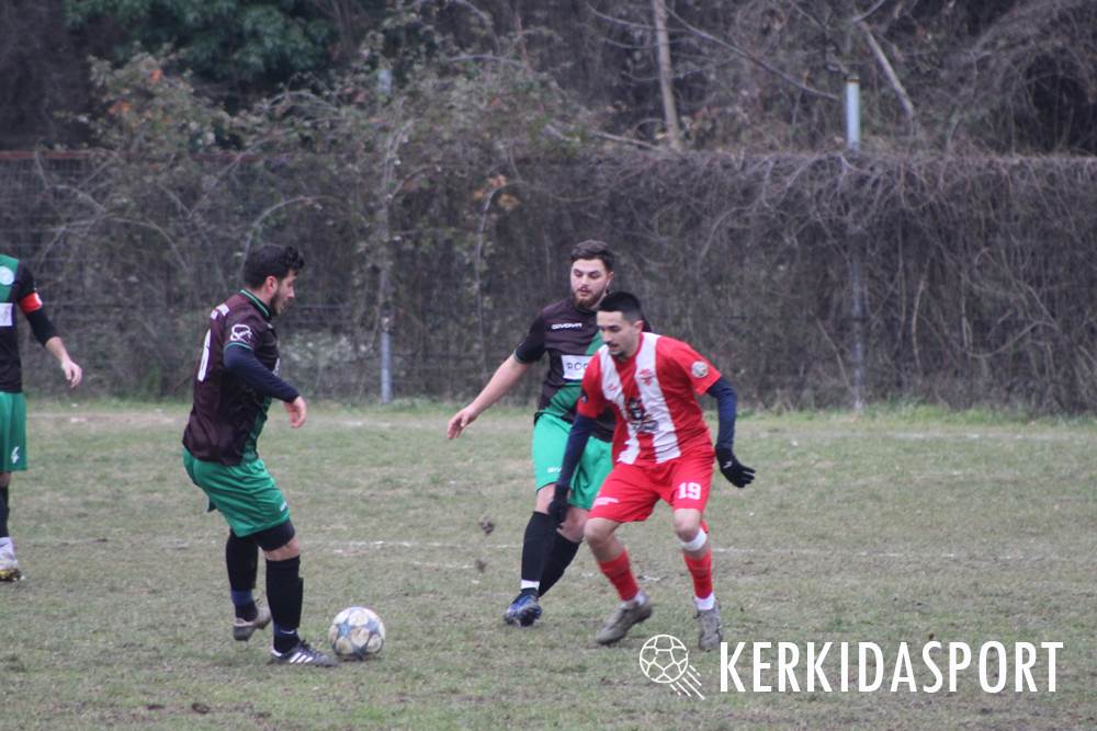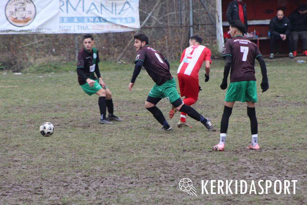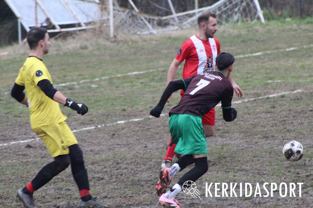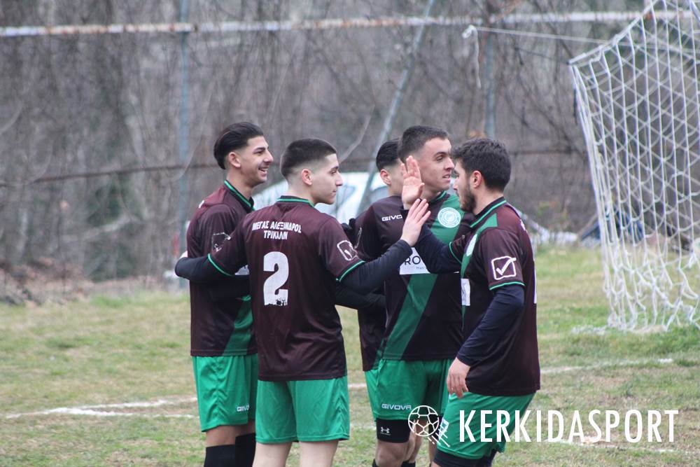 Οι φιλοξενούμενοι μπήκαν από νωρίς αποφασισμένοι να «καθαρίσουν» το ματς, με τον Δ. Κίτσα να ανοίγει το σκορ μόλις στο 5’ και να ακολουθούν άλλα δύο τέρματα από τον ίδιο στο 25’ και το 30’, δίνοντας από νωρίς διαστάσεις θριάμβου στην αναμέτρηση. Στο 40’ ο Ν. Κίτσας πρόσθεσε ακόμη ένα γκολ, κλείνοντας ιδανικά το πρώτο ημίχρονο για τα Τρίκαλα.