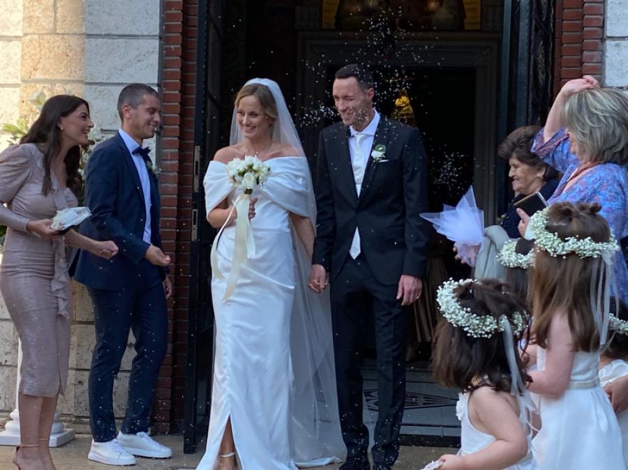 Την Κυριακή το απόγευμα στον Ιερό Ναό των Αγίων Αναργυρων στη Βέροια, ενώθηκε με τα δεσμά του γάμου με την εκλεκτή της καρδιάς του Σάρρα Αντωνιάδου, κόρη του γνωστού γυναικολόγου και κλινικάρχη Νίκου Αντωνιάδη.