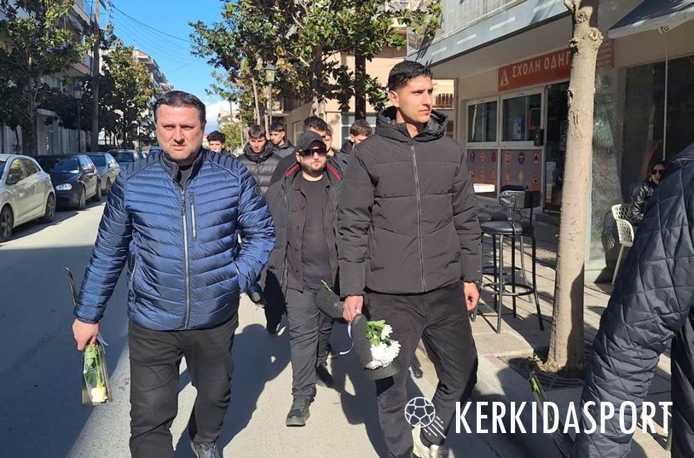 Το παρών στην τελετή δίνει ο Δήμαρχος Αλεξάνδρειας, Παναγιώτης Γκυρίνης, ενώ παρούσα ειναι και αντιπροσωπεία της ομάδας της Βέροιας (φωτο), δείχνοντας πως μπροστά σε τέτοιες τραγωδίες δεν υπάρχουν χρώματα και οπαδικές διαφορές.