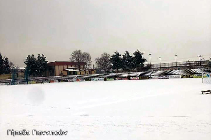Οι αγωνιστικοί χώροι των γηπέδων των Γιαννιτσών (υποδέχονται τη ΒΕΡΟΙΑ) και της Αγκαθιάς (φιλοξενεί τον Άρη Παλαιοχωρίου) είναι γεμάτοι από χιόνι και αυτή τη στιγμή θεωρείται δύσκολο έως απίθανο να διεξαχθούν τα παιχνίδια.